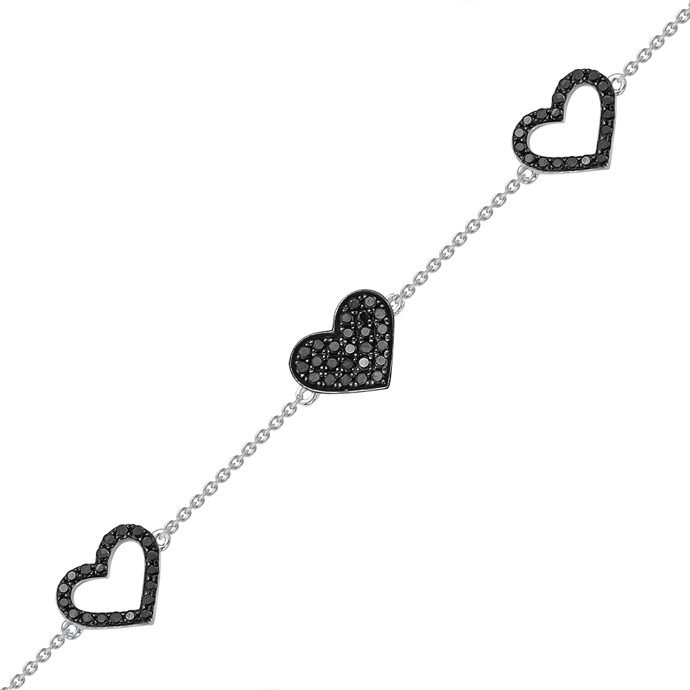 Браслет на ногу с сердцами из белого золота с чёрными бриллиантами станет оригинальным выражением любви. Сердце традиционно символизирует глубокие чувства и привязанность, а драгоценные камни добавляют изделию шарм и особый шик. Застежка карабин.