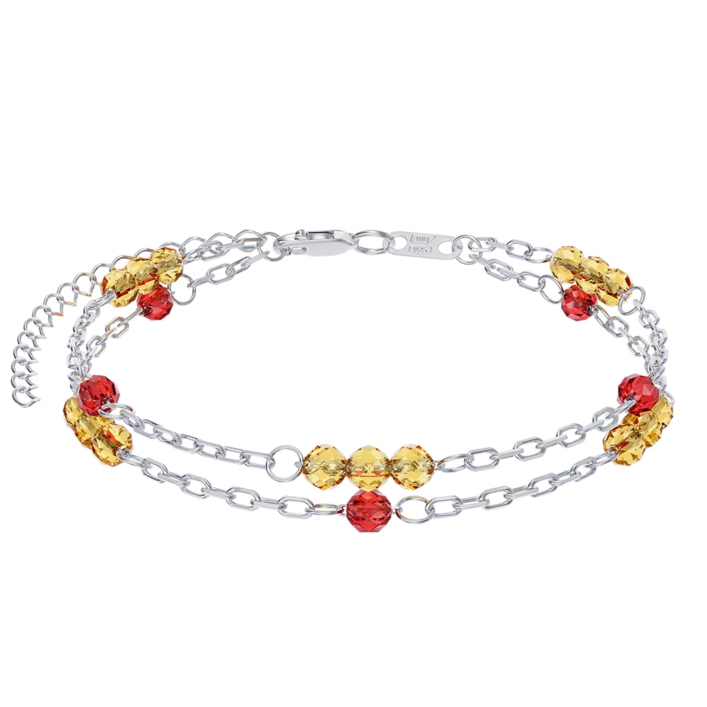 Дизайнерский браслет из серебра 925 пробы с полудрагоценными камнями - прекрасный выбор как для торжественных случаев, так и для романтических свиданий. Двойная нить цепи плетения Форцатина рада задаёт динамику и выгодно представляет жёлтый цитрин и красный гранат. Купите изысканный женский браслет KRASTSVETMET в ювелирных магазинах Мир Золота.