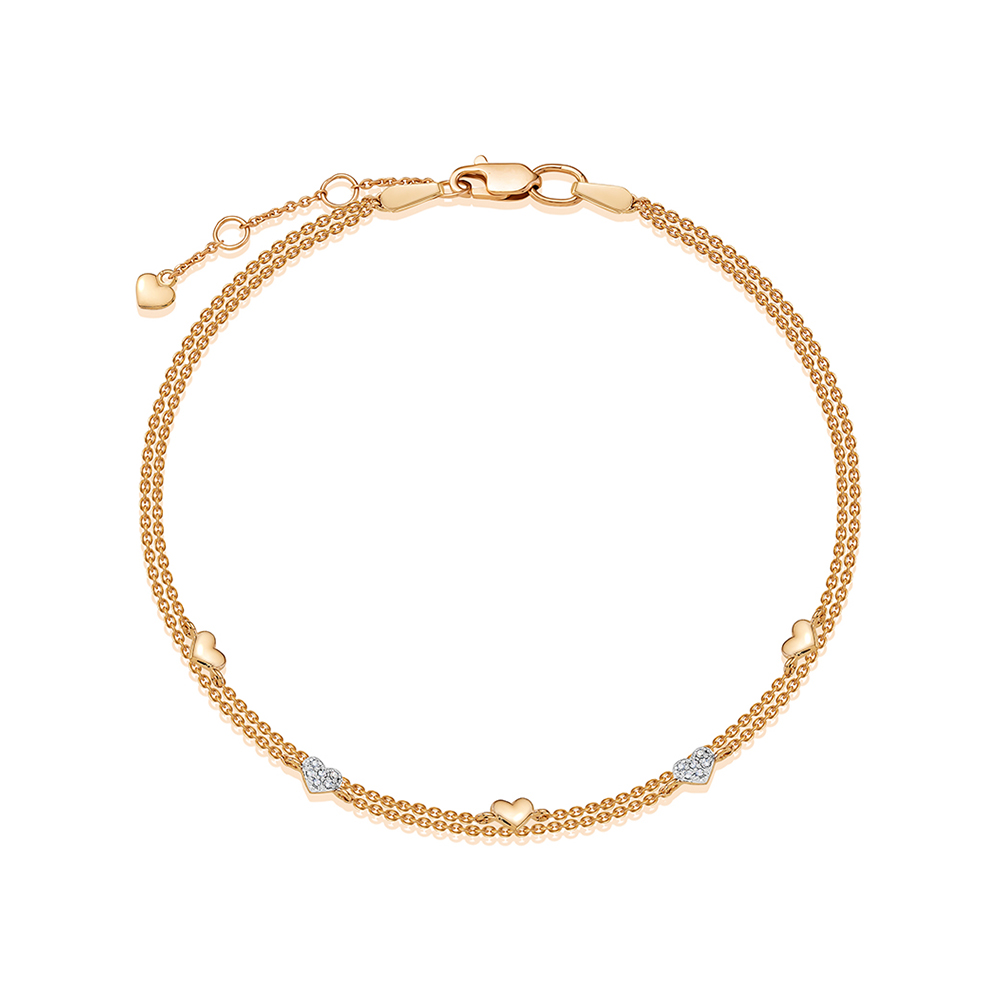 Нежный браслет из красного золота олицетворяет гармонию стиля и тепла, согревая руку своей владелицы мягким сиянием благородного материала. Цепочка украшена россыпью бриллиантов, которые мягко мерцают при свете, создавая атмосферу романтики и утонченности. Этот романтичный браслет подарит ощущение радости и вдохновения каждый раз,