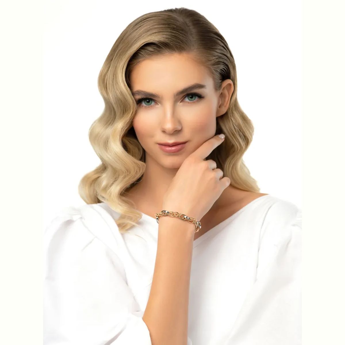 Золотой браслет сочетает в себе элегантную форму, лёгкость и безупречное качество исполнения. Стильный дизайн делает его универсальным: он одинаково гармонично дополнит как деловой костюм, так и вечерний наряд. Изящность и благородство украшения подчеркнут индивидуальность, добавляя образу уверенности.