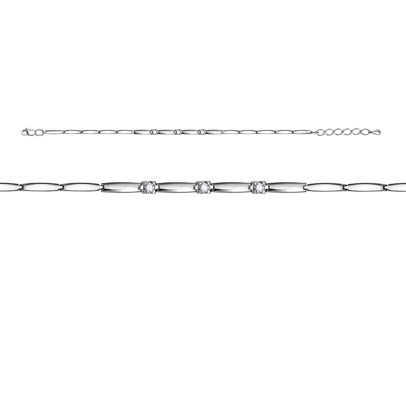 Утонченный ювелирный браслет выполнен из золотых звеньев и ослепительных бриллиантов. Мягкость линий белого золота придает нотку особой роскоши своей обладательнице. Современность и классика вне времени удивительным образом сочетаются в этом украшении. Порадуйте себя или купите в подарок этот изысканный браслет в магазинах Мир Золота.