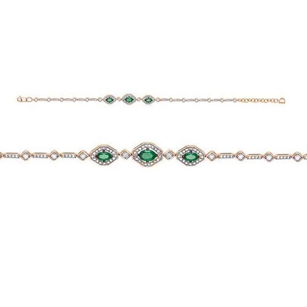 Великолепный браслет из красного золота 585 пробы с натуральными изумрудами и драгоценными бриллиантами превосходно украсит женственный образ, дополнив его ярким акцентом и изысканным сиянием. Благородный блеск изумрудов завораживает взгляд, ослепительные бриллианты эффектно подчеркивают их пленительную красоту. Приобретайте украшение в подарок по привлекательной цене в магазинах Мир Золота.