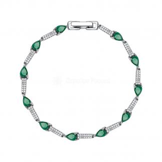 Яркий браслет из родированного серебра 925 пробы с натуральными изумрудами и кубическим цирконием не оставит женщину равнодушной. Кристальное сияние циркония эффектно подчеркивает насыщенный блеск зеленых изумрудов привлекательной формы огранки. Украшение будет прекрасно смотреться в вечернем образе, и станет замечательным подарком по любому поводу. Приобретайте ювелирное украшение выгодно в магазинах Мир Золота.