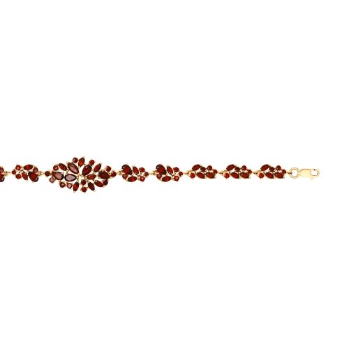 Шикарный браслет, выполненный из красного золота 585 пробы, с множеством натуральных ярких гранатов, станет ярким акцентом женского образа и сделает его по-настоящему роскошным. Великолепный образ украшения привлечет восхищенные взгляды, и эффектно дополнит вечерний и праздничный наряд. Приобретайте ювелирное украшение для идеального подарка по выгодной цене в магазинах Мир Золота.