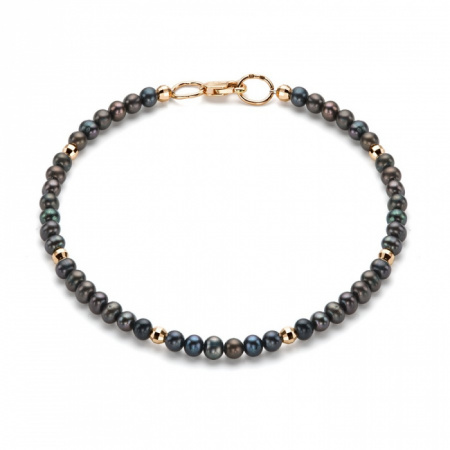 Браслет из желтого золота с черным жемчугом