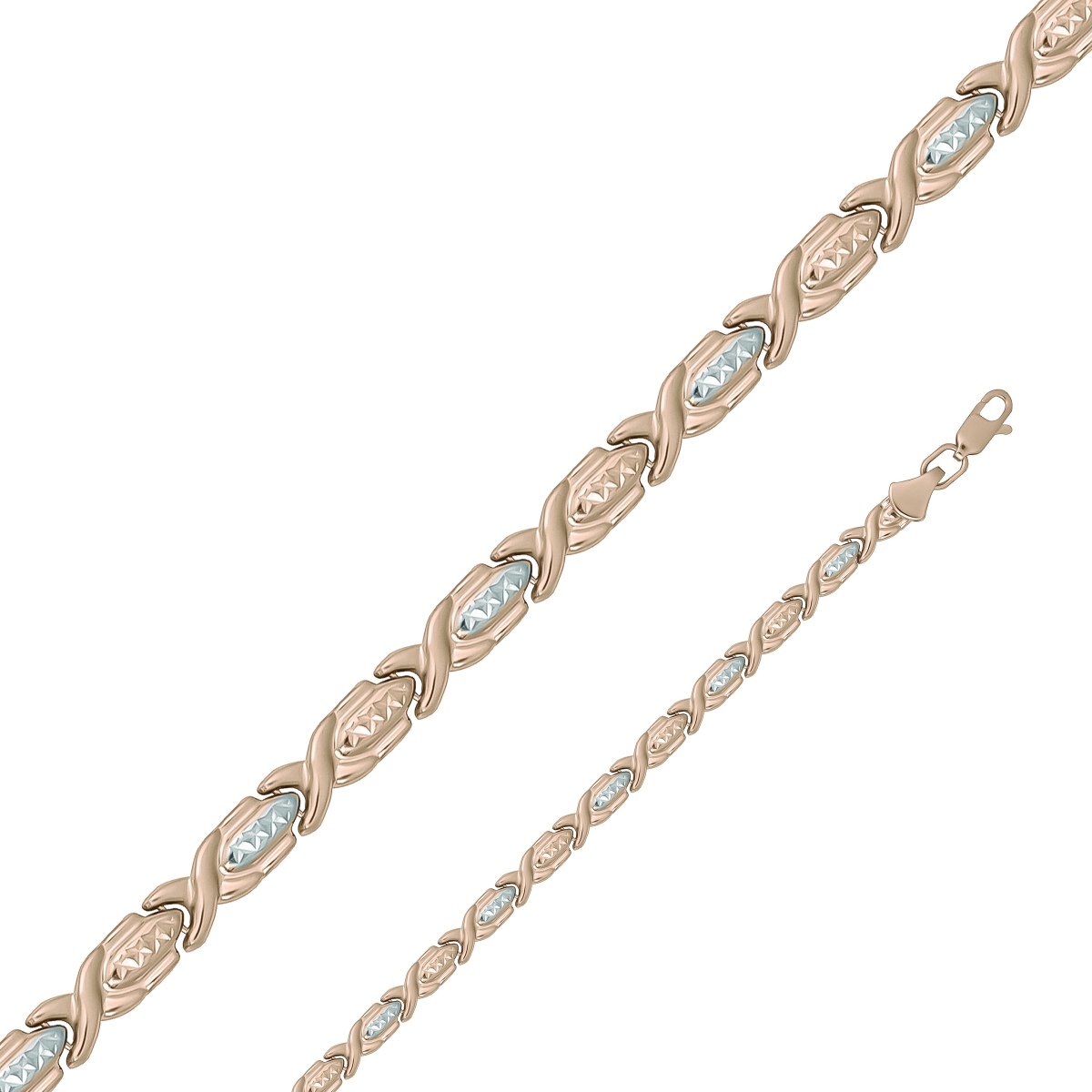 Женский золотой браслет из комбинированного золота 585 пробы завершит повседневный или даже вечерний образ - такое украшение станет основой ювелирного гардероба. Современный дизайн браслета выглядит невероятно изысканно, дорого, но в то же время сдержанно и уместно. Украшение представлено ювелирным брендом Магнат.