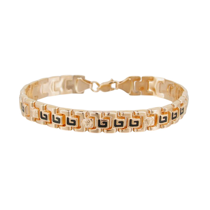 Стильный мужской браслет, созданный в духе легендарного бренда Versace, отличается изысканностью и экстравагантностью. Выполненный из красочного красного золота, он украшен глянцевой чёрной эмалью, подчёркивающей яркость материала. Уникальная рельефная фактура изделия вдохновлена культовыми мотивами марки, такими как знаменитый греческий орнамент. Идеально подойдёт мужчинам, стремящимся подчеркнуть свою индивидуальность.