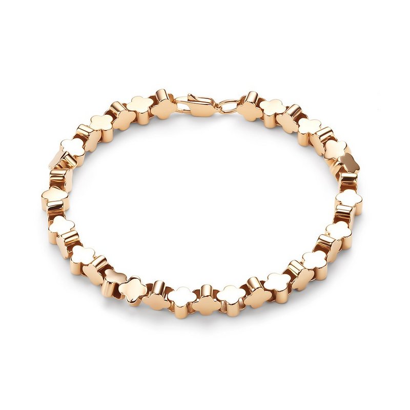 Красивый браслет из красного золота, выполненный в стиле бренда Van Cleef & Arpels привлекает внимание своей элегантностью и утонченностью. Это ювелирное украшение отличается характерным дизайном четырехлистного клевера, символизирующего удачу и счастье. Такой аксессуар станет прекрасным дополнением к вечернему наряду или стильному повседневному образу.