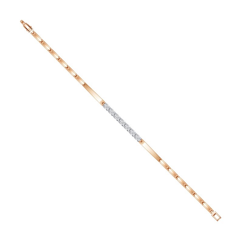 Притягательный браслет из красного золота с мерцающей вставкой из кристально чистых бриллиантов станет прекрасным дополнением вечернего образа. Белое золото акцентирует драгоценные камни, придает объем и подчеркивает их природную красоту. Современный дизайн браслета выглядит невероятно изысканно, дорого, но в то же время сдержанно и уместно. Тип застежки - карабин, самый надежный и удобный.