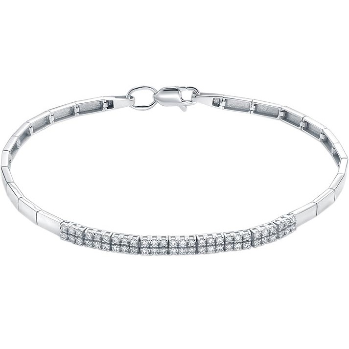 Стильный браслет из белого золота с мерцающей вставкой из кристально чистых бриллиантов станет прекрасным дополнением вечернего образа. Белое золото акцентирует драгоценные камни, придает объем и подчеркивает их природную красоту. Современный дизайн браслета выглядит невероятно изысканно, дорого, но в то же время сдержанно и уместно. Тип застежки - карабин, самый надежный и удобный.