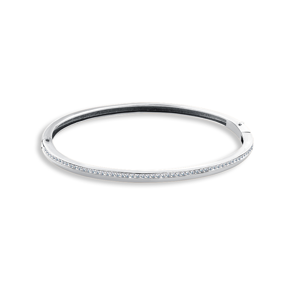 Элегантный жёсткий браслет из белого золота 585 пробы с кристальными фианитами займет достойное место в ювелирной коллекции владелицы. Украшение составит идеальное дополнение для современных луков, и может стать базовой основой ювелирного гардероба. Приобретайте браслет для себя или в подарок по привлекательной цене в магазинах Мир Золота.