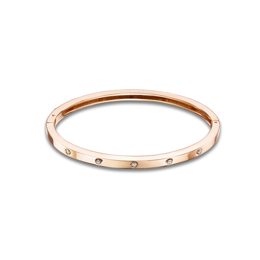 Желанный браслет-обруч из красного золота высшей пробы в стиле известного бренда Cartier доступен в коллекции ювелирного бренда BERGER. Мотив в виде винтов олицетворяет прочность и нерушимость чувств, а яркий блеск прозрачных фианитов всегда привлекает к себе внимание. Такой стильный браслет невозможно перепутать ни с каким другим.