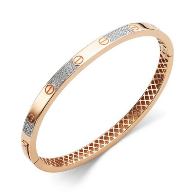 Изящный браслет из красного золота выполнен в традициях знаменитого французского дома Cartier Love. Композиция из идеально огранённых фианитов символизирует чистоту и страсть одновременно. Изящные линии и гладкая поверхность браслета создают ощущение легкости и воздушности, подчеркивая индивидуальность. Такой шедевр ювелирного искусства непременно привлечёт внимание своим стилем и уникальностью исполнения.