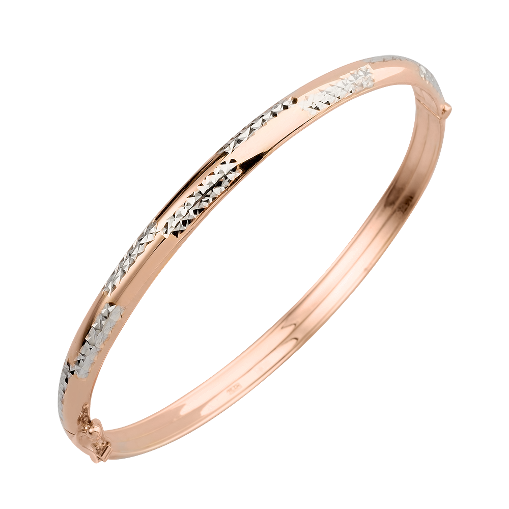 Браслет-обруч из красного золота с изящной алмазной гранью белого золота — это воплощение современного стиля. Сочетание двух оттенков металла создаёт эффектный контраст, который привлекает внимание. Благодаря классическому дизайну и игре света на гранях украшение выглядит актуально и дорого. Такой аксессуар станет прекрасным дополнением как к повседневному, так и к вечернему образу.