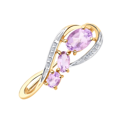 Брошь из красного золота с аметистами и фианитами