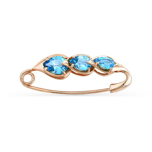 Декоративная брошь-булавка с полудрагоценными топазами грушевидной формы огранки выполнена из красного золота 585 пробы. Привлекательная брошь с нежным блеском голубых топазов станет заметным акцентом очаровательного женственного образа, и сделает его более ярким и выразительным. Приобретайте ювелирное украшение для себя или в подарок по выгодной цене в магазинах Мир Золота.