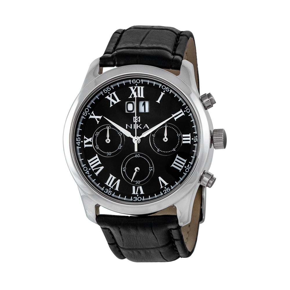 Самый точный хронограф компании НИКА фиксирует показания секундомера с точностью до 1/20 секунды. Крупные мужские часы из серебра обладают еще одним преимуществом – речь идет о престижном усложнении «большая дата», позволяющем разместить информацию в увеличенной, двойной апертуре.