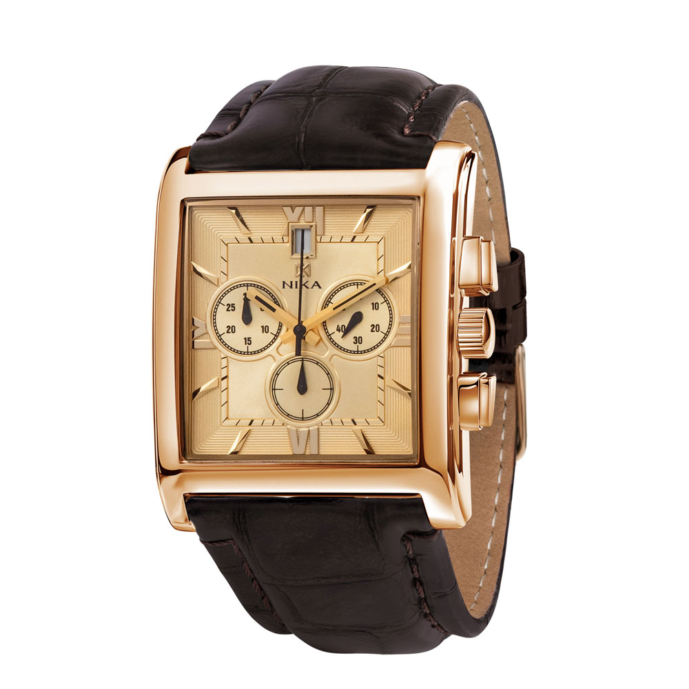 Классические римские цифры и счетчики хронографа ярко выделяются на циферблате Окошко с датой календаря расположено наверху циферблата. Швейцарский кварцевый механизм Ronda 5030 с индикацией часов, минут и секунд, даты и хронографа — гарантия точности и долговечности.