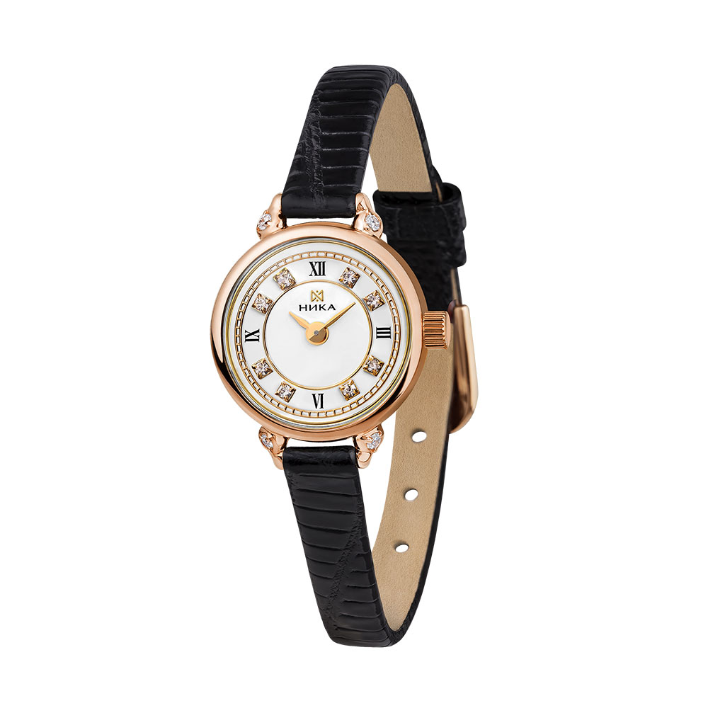 Элегантные классические часы Nika из коллекции Viva в миниатюрном золотом корпусе с сияющим фианитами идеально дополнят повседневные образы современной леди. Изящные часы на кожаном ремешке комфортны в носке, и подойдут к любому стилю одежды. Приобретайте кварцевые часы с надежным механизмом по привлекательной цене в магазинах Мир Золота.
