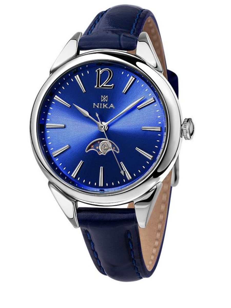Женские серебряные часы Moon Rose (Лунная Роза) раскрывают секреты лунного календаря. Индикатор лунных фаз в виде бутона передвигается по звездному небу и подсказывает наилучшее время для заботы о красоте и здоровье. Синий циферблат выполнен по технологии Sunray (солнечные лучи). Метки в виде штрихов и арабской цифры 12. Рифленая заводная головка. Удобный кожаный ремешок в синем цвете. Приобретайте серебряные часы выгодно в магазинах Мир Золота.