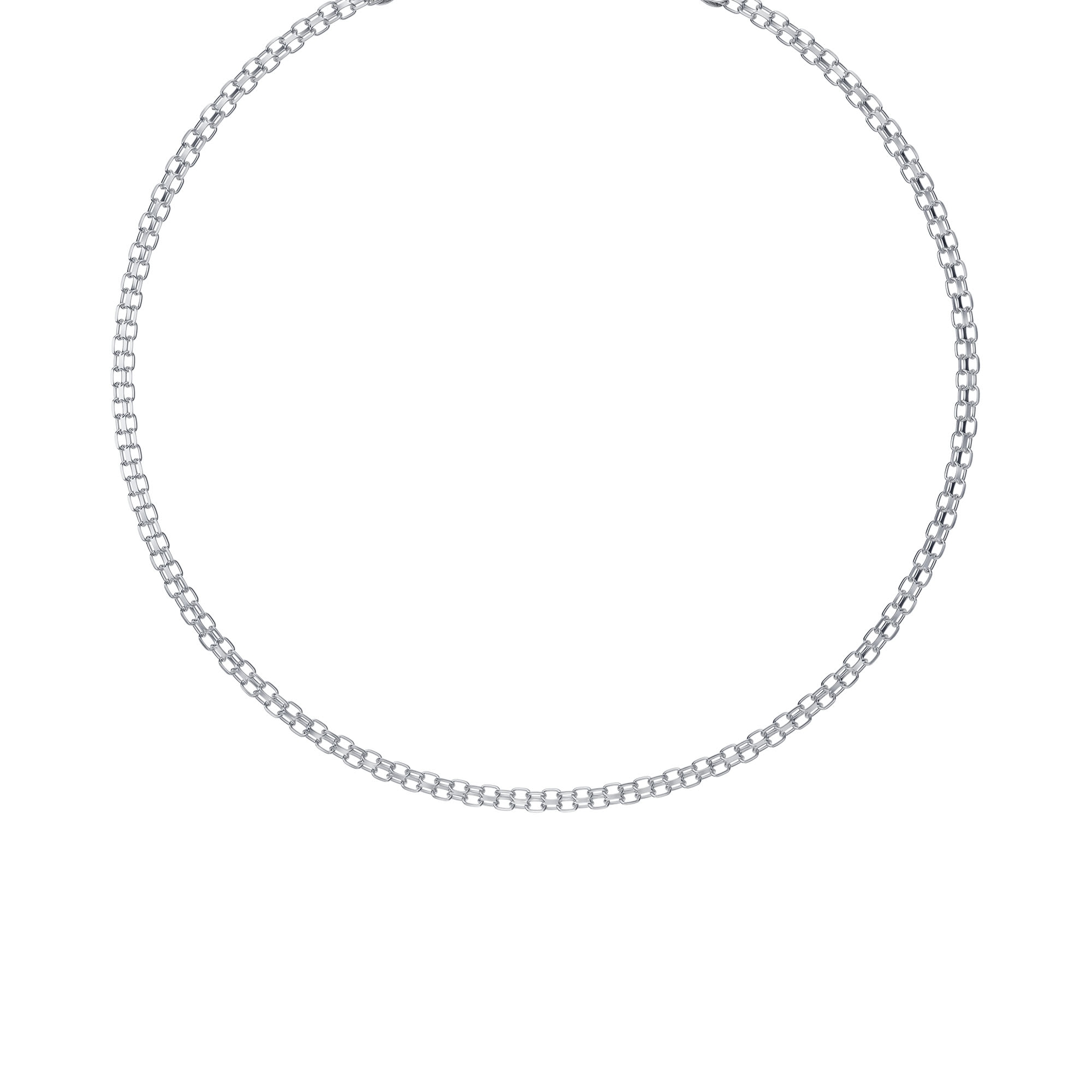 Колье-чокер с практичным панцирным плетением «Бисмарк» с алмазной огранкой и регулировкой длины выполнено из родированного серебра 925 пробы. Элегантное украшение сделает повседневный образ более стильным и выразительным. Алмазная огранка создает игру света на металле, что придает изделию особый блеск. Приобретайте колье по выгодной цене в магазинах Мир Золота.