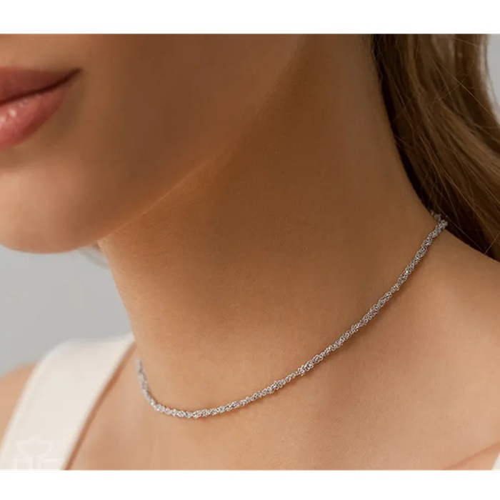Колье-чокер из родированного серебра 925 пробы из трех прядей якорного плетения «Кобра» с алмазной огранкой и регулировкой длины отлично дополнит повседневный базовый образ. Родиевое покрытие защищает серебро от потемнения, и добавляет украшению яркости и блеска. Приобретайте колье по привлекательной цене в магазинах Мир Золота.