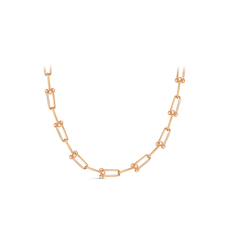 Колье из красного золота с фианитом в стиле Tiffany представляет собой элегантное украшение, состоящее из изящных звеньев, соединенных между собой плавными линиями. Оно выполнено в классическом дизайне бренда, подчеркивая утонченность и аристократизм владелицы. Красное золото придает изделию теплый оттенок, выгодно оттеняя кожу и делая акцент на индивидуальности стиля обладательницы украшения.