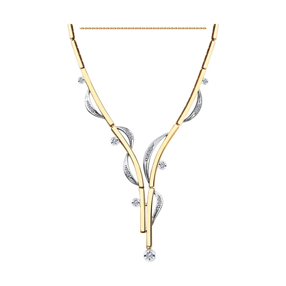 Утонченное колье из красного золота с яркими бриллиантами нежно акцентирует внимание на зоне декольте. Фантазийные линии белого золота, украшенные бриллиантами кажутся роскошно воздушными и следуют трендовым преображениям классических украшений с учетом современной моды. Статусное ювелирное колье прекрасно подойдет для торжественных поводов.