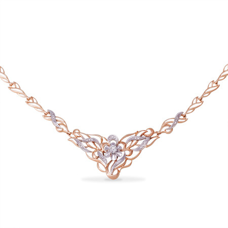 Нежное роскошное женское колье из красного золота с блестящими бриллиантами станет желанным подарком и статусным украшением. Яркое бриллиантовое украшение с акцентным белым золотом завершит дорогой вечерний образ - такое украшение станет основой ювелирного гардероба. Купите золотое колье с бриллиантами в ювелирных магазинах Мир Золота.