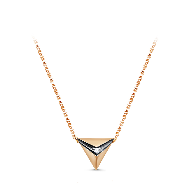 —Колье из красного золота с подвеской в форме треугольника с бриллиантом