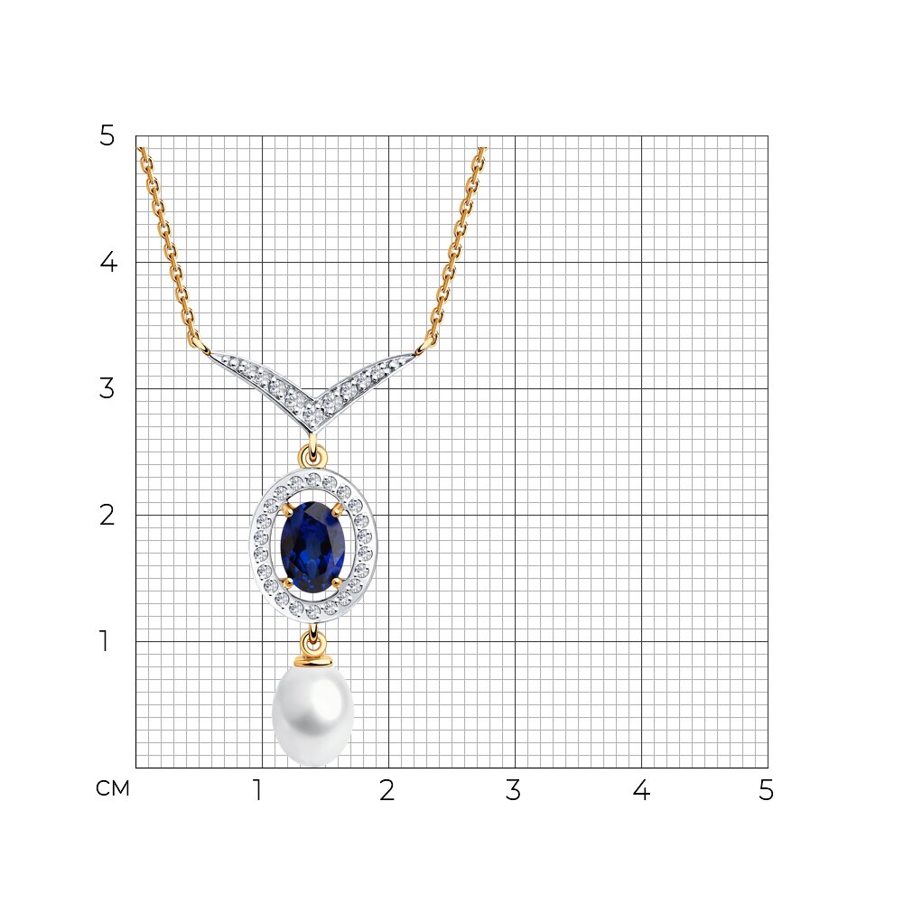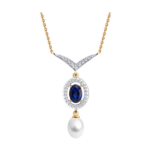 Эффектное колье из красного золота 585 пробы с белым жемчугом, сапфировым корундом и прозрачными фианитами сделает женский образ более ярким и изысканным. Выразительное украшение великолепно смотрится, и идеально дополнит вечерний наряд, подчеркнув безупречный вкус обладательницы. Приобретайте колье для своей коллекции или в подарок по выгодным ценам в магазинах Мир Золота.