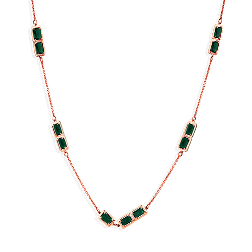 Стильное колье из красного золота 585 пробы с композицией из зеленых турмалинов. Украшение актуального дизайна, с обворожительным сиянием полудрагоценных камней огранки октагон, эффектно дополнит современные трендовые образы, и отлично подойдет для вечернего выхода или торжественного мероприятия. Приобретайте украшение в подарок по выгодным ценам в магазинах Мир Золота.
