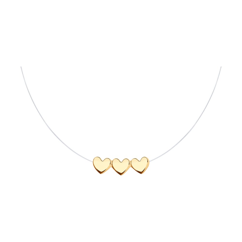 Колье на леске с тремя золотыми сердцами из красного золота — нежное и романтичное украшение, идеально подходящее для ежедневного ношения. Тонкая леска подчеркивает воздушность композиции, позволяя акцентировать внимание именно на золотых деталях. Колье гармонично дополнит образ девушки, предпочитающей легкие и женственные аксессуары. Украшение станет отличным подарком любимой женщине, символизируя искреннюю любовь и заботу.