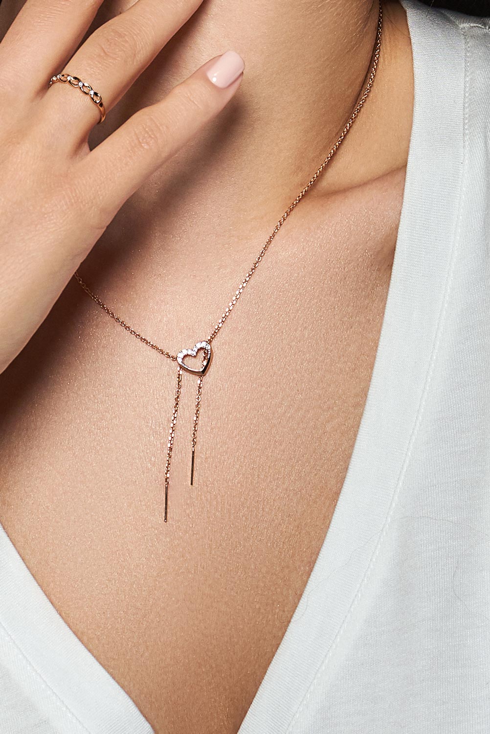 Колье из красного золота 585 пробы украшено изящным сердечком с сияющими фианитами. Украшение с кристальным блеском фианитов смотрится очень женственно и привлекательно, и станет очаровательной деталью современного образа. Приобретайте ювелирное колье для себя или в подарок по выгодной цене в магазинах Мир Золота.