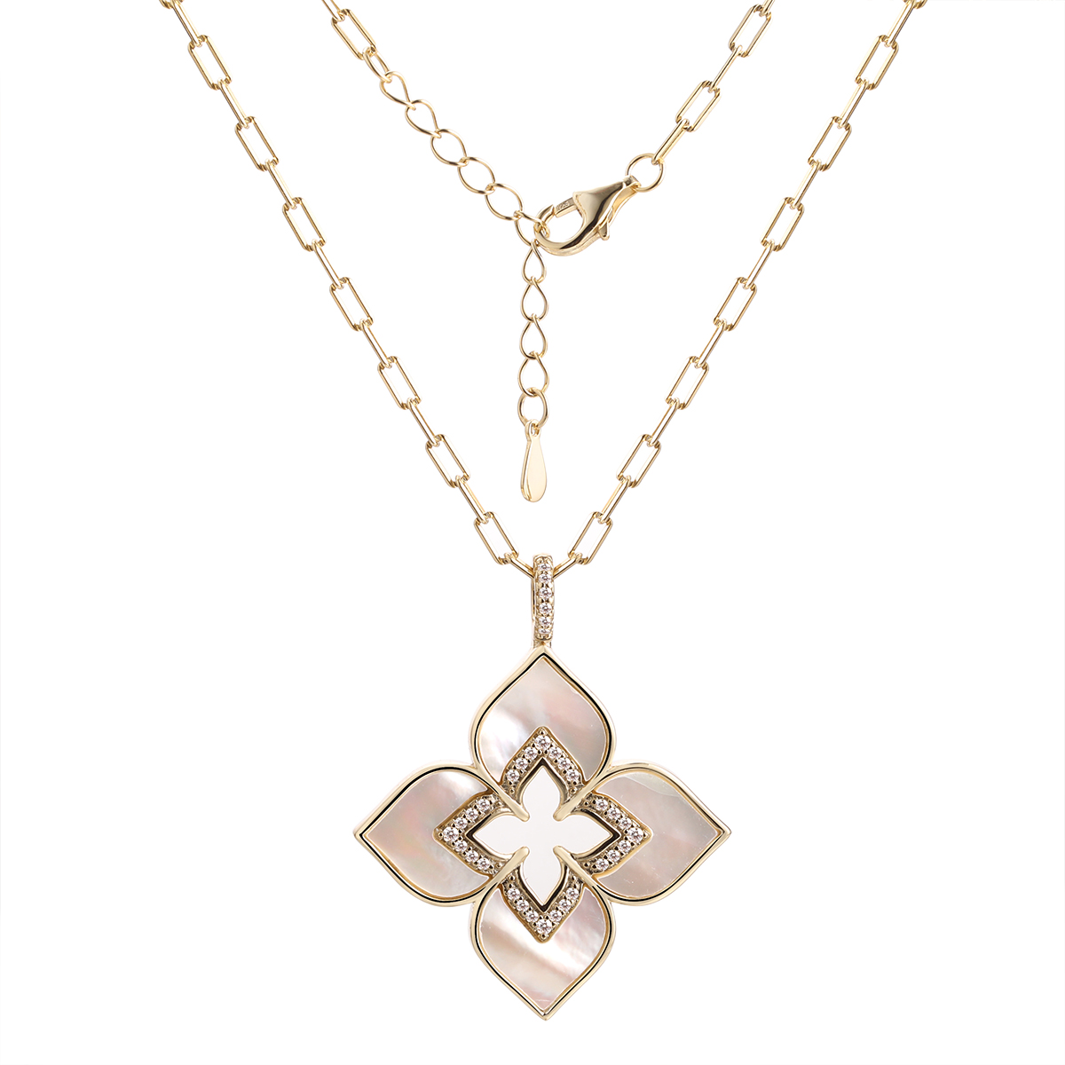 Колье из позолоченного серебра с перламутром и фианитами