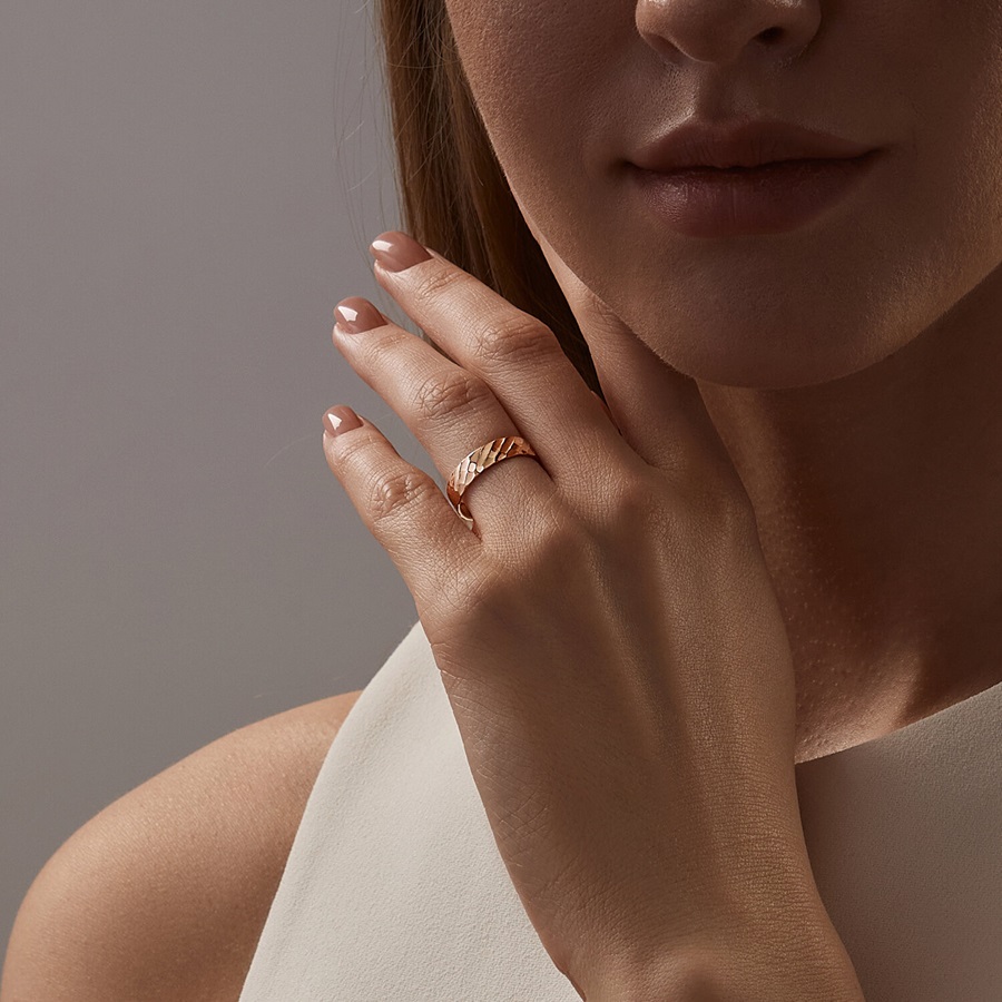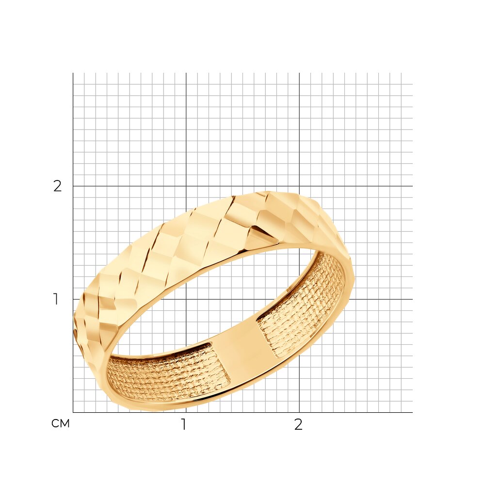 Кольцо из красного золота 585 пробы без вставок с алмазной огранкой будет актуальным дополнением повседневного образа. Интересное привлекательное кольцо с эффектным переливчатым блеском алмазной грани сделает образ более ярким и изысканным. Приобретайте украшение по выгодным ценам в магазинах Мир Золота.