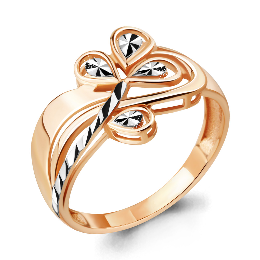 Кольцо из красного и белого золота 585 пробы с алмазной огранкой непременно привлечет к себе внимание. Оригинальное кольцо с контрастным сочетанием двух оттенков золота и эффектным блеском алмазной грани станет изысканным акцентом современного образа, и подчеркнет безупречный вкус владелицы. Приобретайте кольцо в подарок по выгодной цене в магазинах Мир Золота.