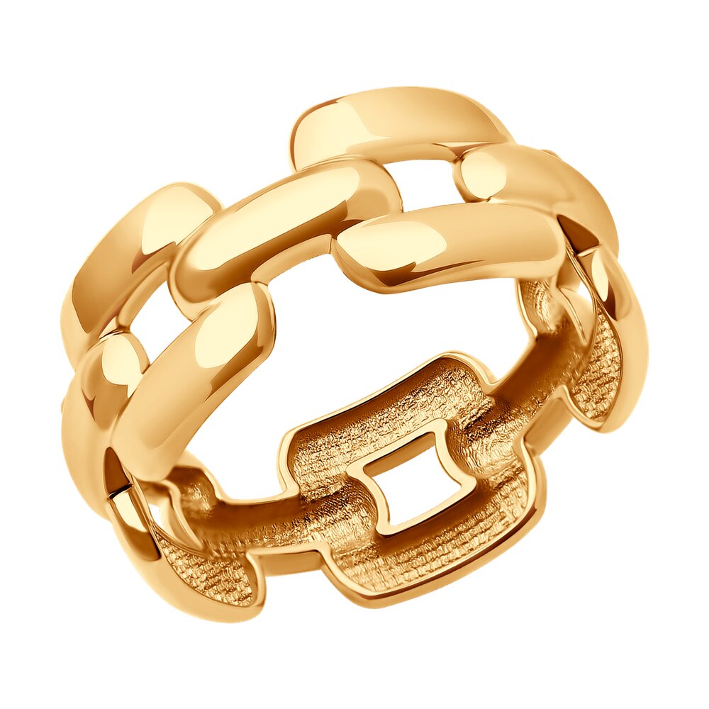 Кольцо из красного золота, выполненное в виде объёмных звеньев цепи, выглядит массивно и впечатляюще. Каждое звено тщательно проработано, создавая иллюзию настоящей цепи, обернутой вокруг пальца. Этот аксессуар станет смелым заявлением стиля, подходящим для тех, кто любит выделяться из толпы. Он привнесёт в ваш образ нотку брутальности и уверенности, одновременно оставаясь элегантным и привлекательным.