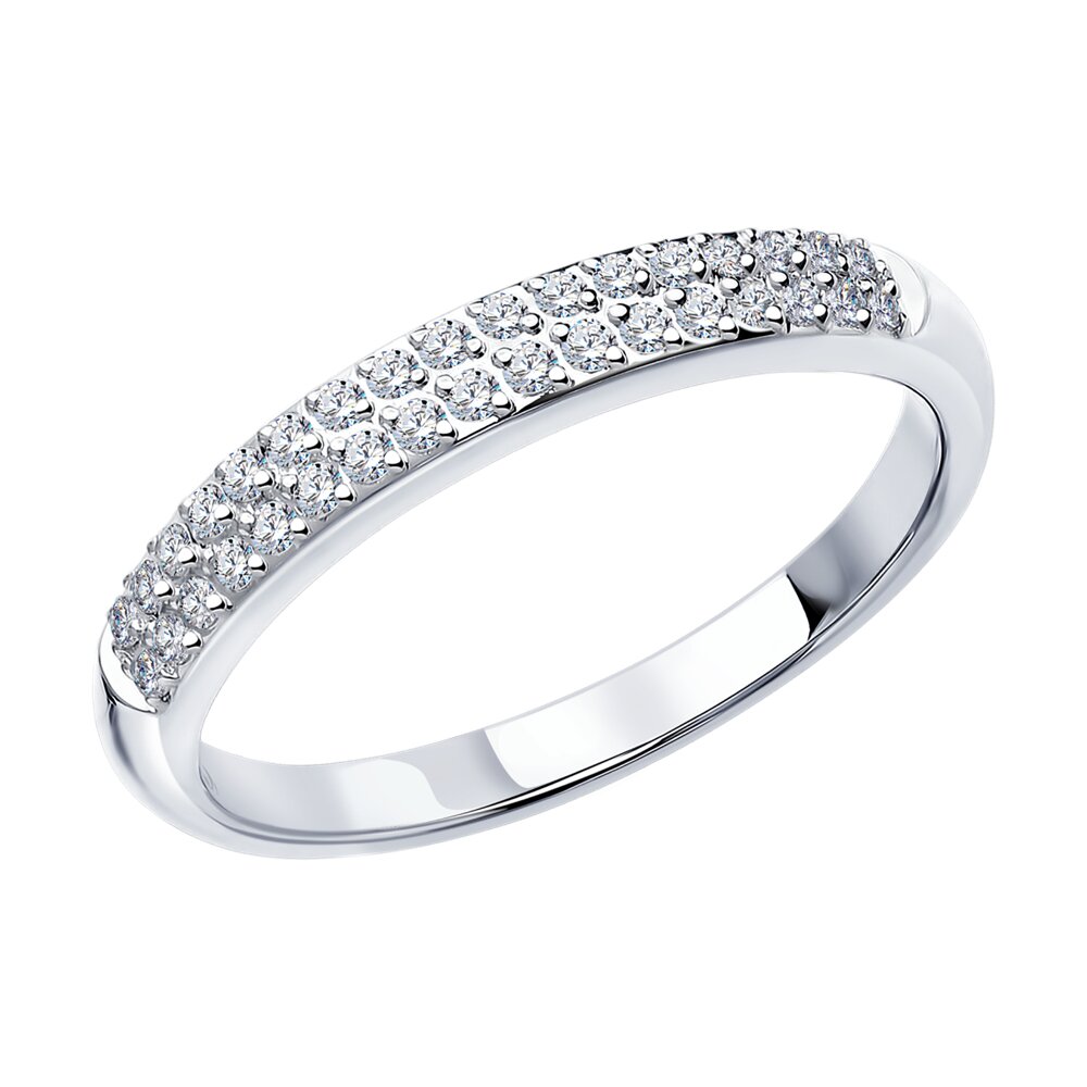 Классическое обручальное золотое кольцо SOKOLOV из белого золота высшей пробы со строгими дорожками ослепительных бриллиантов станет идеальным продолжением счастливого образа. Завораживающий блеск бриллиантов, окутанный магическим шлейфом из белого золота, превращает кольцо в изысканное украшение, достойное внимания. Купите свою идеальную пару колец в ювелирных магазинах Мир Золота и Ваши образы в главный день будут безупречны.