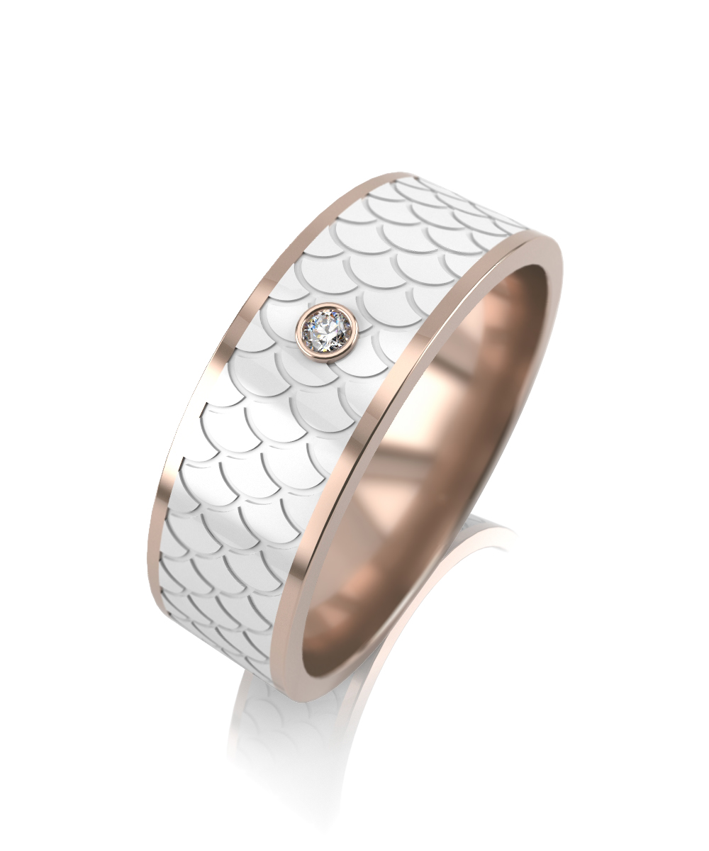 —Обручальное кольцо из красного золота с белой керамикой и бриллиантом
