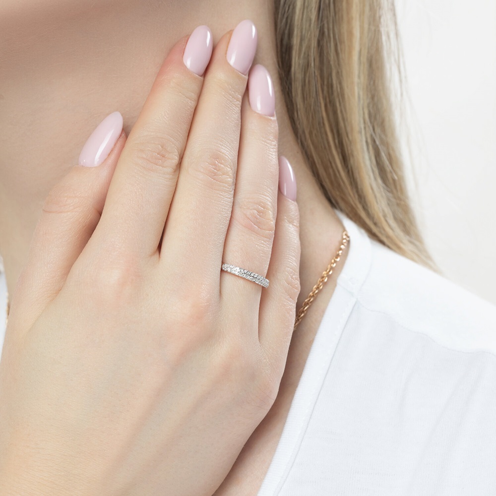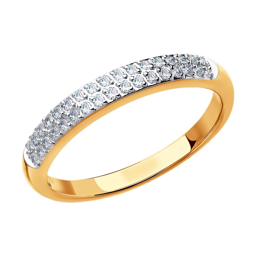 Обручальное кольцо из красного золота 585 пробы с дорожками сверкающих бриллиантов выполнено в классическом универсальном дзайне. Золотое кольцо с благородным блеском бриллиантов станет вашем главным повседневным украшением и символом взаимной любви. Приобретайте кольцо по выгодным ценам в магазинах Мир Золота.