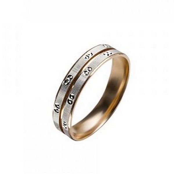 Сочетание красного и белого золота в этом обручальном кольце как будто бы делит его на две части, что выглядит очень необычно и привлекает внимание. Современная технология вытачивания алмазным резцом создает оптическую имитацию драгоценных камней по всему диаметру кольца, поэтому оно ярко играет своим блеском, под стать бриллиантам! Купите свою оригинальную пару колец в ювелирных магазинах Мир Золота.