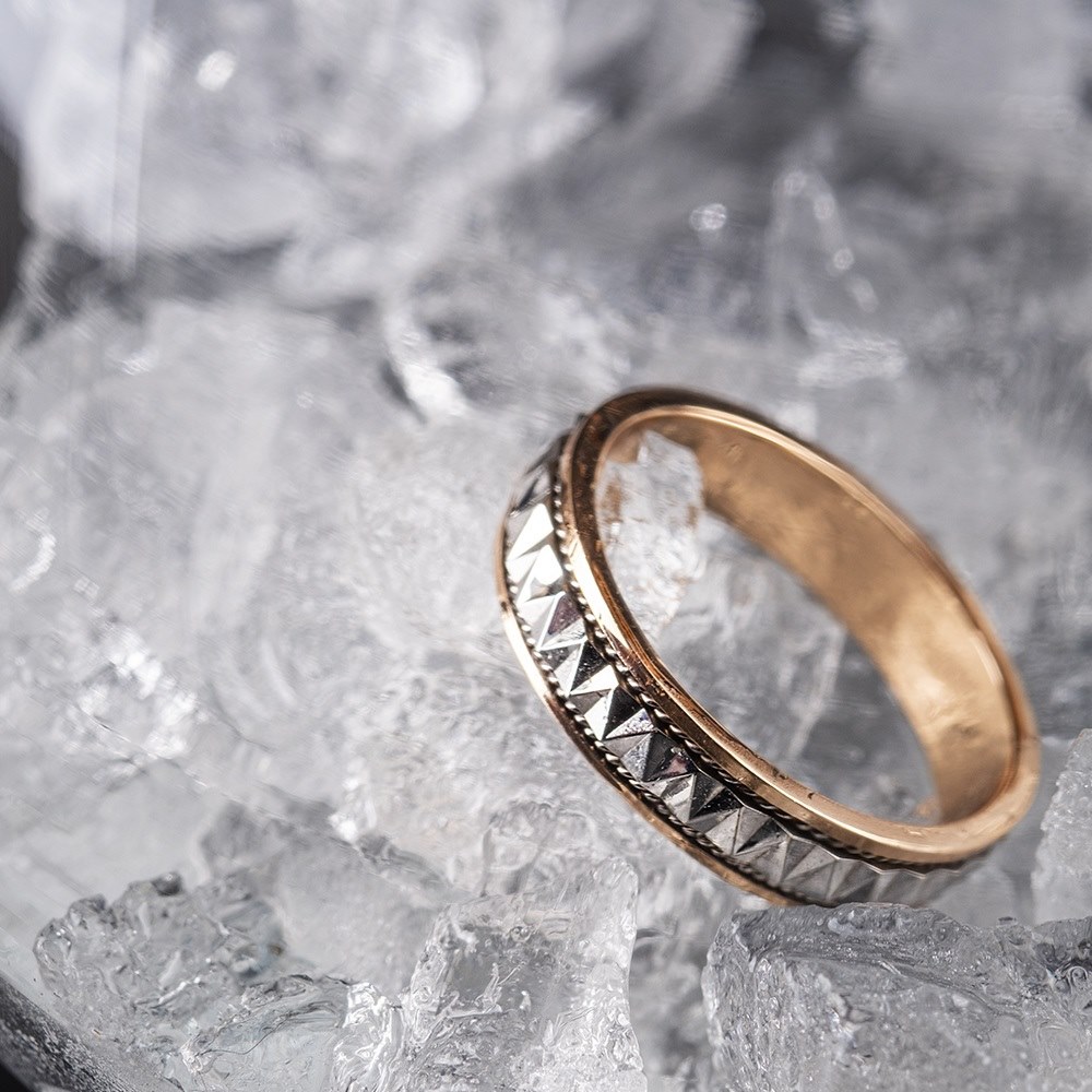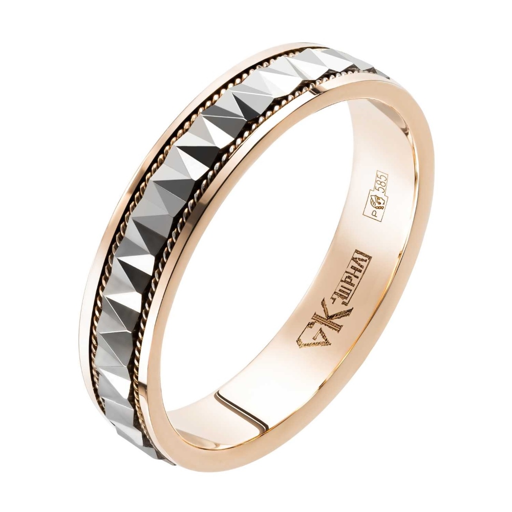 Обручальное кольцо из комбинированного золота с алмазной гранью