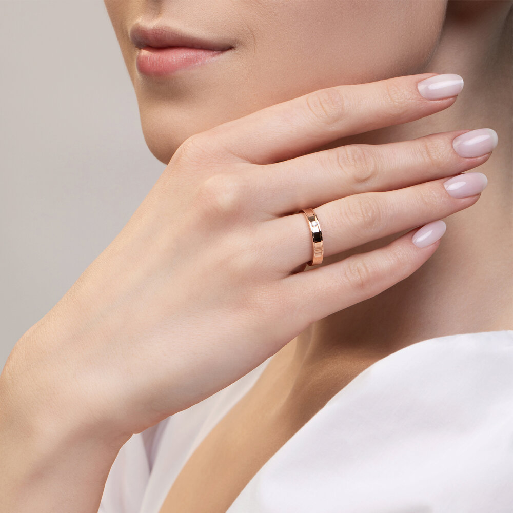 Оригинальное обручальное кольцо с роскошным бриллиантом станет идеальным продолжением счастливого образа. Красота не мешает этой модели быть практичной - красное золото 585 пробы отличается износостойкостью, а комфортная посадка является гарантией отсутствия дискомфорта даже в конце трудного дня. Купите свою идеальную пару колец в ювелирных магазинах Мир Золота и Ваши образы в главный день будут безупречны.