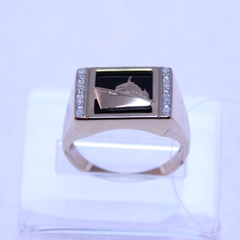 Стильное кольцо-печатка из золота 585 пробы с ониксом и бриллиантами является отражением актуальных трендов ювелирной моды. Сочетание золота с ограненной вставкой оникса с бриллиантами привлекает игрой солнечного света на гранях драгоценных камней. Печатка с изображением корабля роскошно смотрится и подчеркивает индивидуальность. Украшение станет великолепным завершающим штрихом в разных образах. Приобретайте кольцо по выгодным ценам в магазинах Мир Золота.