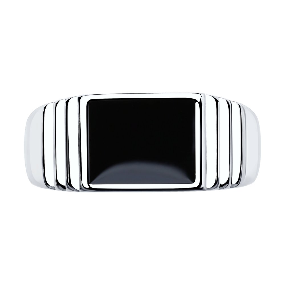 Строгое кольцо-печатка для мужчин из серебра 925 пробы с прямоугольной вставкой из эмали. Холодный оттенок серебристо-белого металла эффектно подчеркивает чёрный цвет вставки. Дополните свой брутальный образ данным аксессуаром - приобретайте кольцо-печатку в ювелирных магазинах Мир Золота.