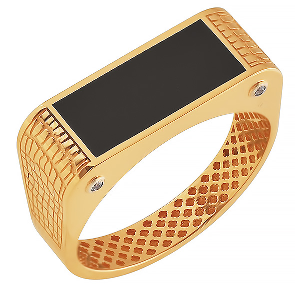 Кольцо-печатка из красного золота 585 пробы с выразительной вставкой с черным агатом и прозрачными фианитами стильно смотрится, и станет эффектным дополнением современного мужского образа. Элегантное украшение не останется незамеченным, и подчеркнет индивидуальность владельца. Приобретайте кольцо для себя или в подарок по выгодным ценам в магазинах Мир Золота.