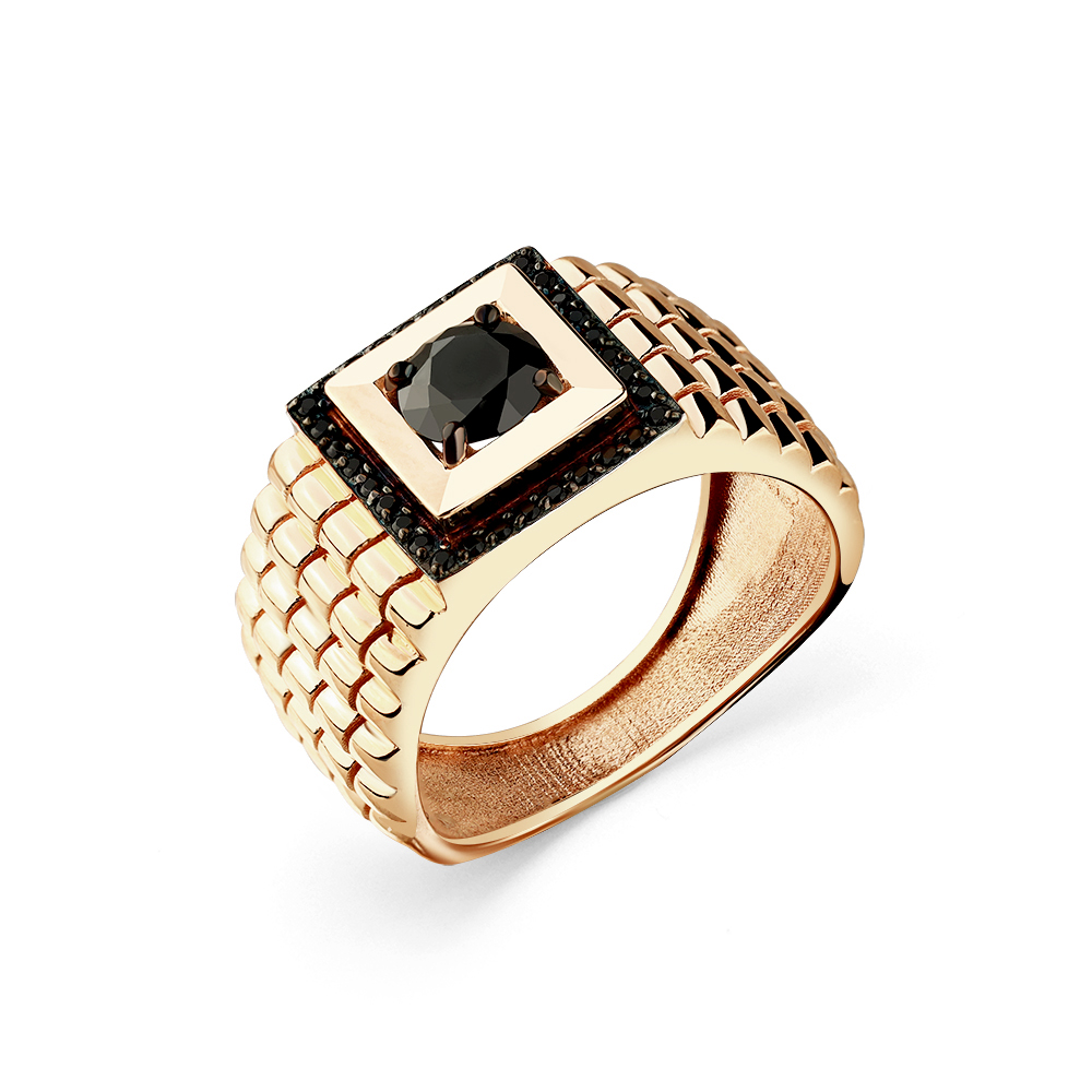 Стильное кольцо-печатка из красного золота 585 пробы, декорированное черными фианитами, не останется незамеченным. Эффектное кольцо современного дизайна с насыщенным блеском камней элегантно смотрится, и сделает мужской образ более ярким и выразительным. Приобретайте великолепное украшение в подарок по привлекательной цене в магазинах Мир Золота.