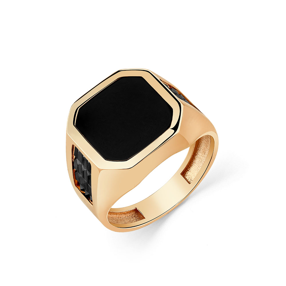 Стильное кольцо-печатка из красного золота 585 пробы с выразительной вставкой с натуральным черным агатом станет отличным дополнением современного образа. Украшение с ярким акцентом черного камня не останется незамеченным, и подчеркнет индивидуальность и стиль обладателя. Приобретайте мужское кольцо с агатом по выгодной цене в магазинах Мир Золота.