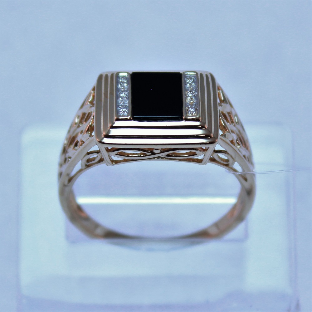 —Печатка из красного золота с ониксом и бриллиантами